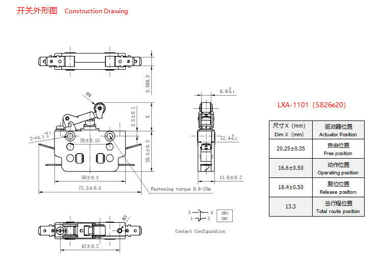 LXA系列限位开关采用加固设计,有较高的抗破坏能力,触点采用快速分合设计,即使用于驱动速度较慢的限位装置和机械检测等场合,也能保证较高的载荷能力。并具有强制分断装置,这保证了可靠的分断能力,甚至在过载或短路导致触点发生粘接的情况下仍然能强制分断,因此也特别适合用于对安全性能较高的场合。