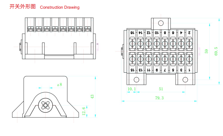 LFF系列辅助开关具有插接、压接两种接线方式,且出线方向在一侧,方便空间狭小的场合使用。