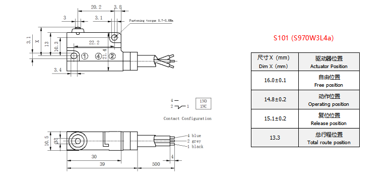 S10X系列限位开关整体防护等级IP40/IP67,内部电连接件表面全部电镀纯银或镀金,具有接通可靠、载流能力强等特点。
